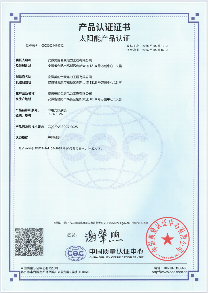 戶(hù)用光伏系統(tǒng)CQC認(rèn)證49.7kW-CQC25024474712